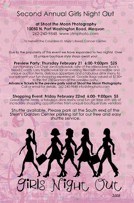 Time again for Girls Night Out at Shoot the Moon Photography in Mequon. The event last year was hot hot hot and we hope to see you there. Stop by, say hello to Michelle, and get pampered!